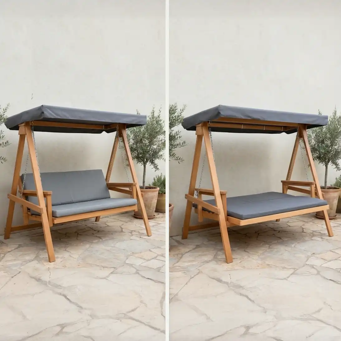 שדרגו את הגינה עם הנדנדה היוקרתית, שילוב עוצמתי של עץ שיטה טבעי, נוחות מקסימלית ומנגנון פתיחה מהיר למיטת שכיבה מפנקת!
