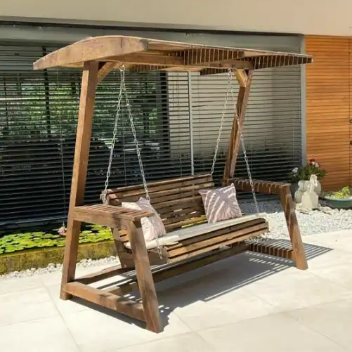 הנדנדה מסופקת בגוון עץ טבעי, ללא צביעה.