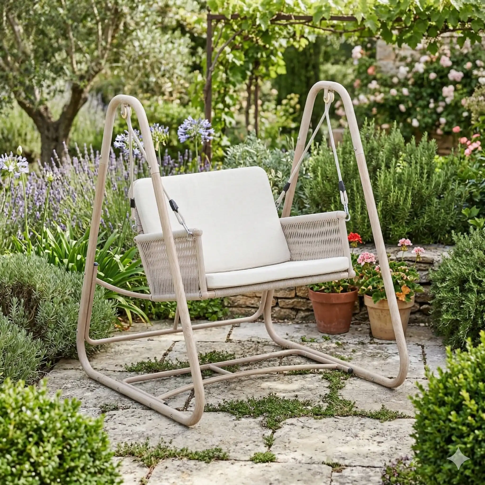 הנדנדה אידאלית לרגעי מנוחה, קריאה שקטה או קפה של אחר הצהריים, עם תחושת ריחוף קלה שמוסיפה לחוויית הרוגע.